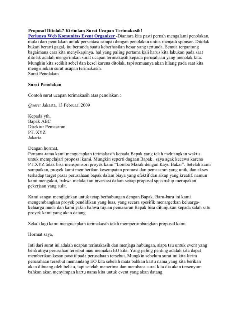 Contoh Surat Penolakan Proposal : Contoh Surat Penolakan Magang Sedang / Surat pemberitahuan libur lebaran kampus;